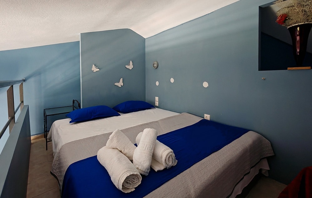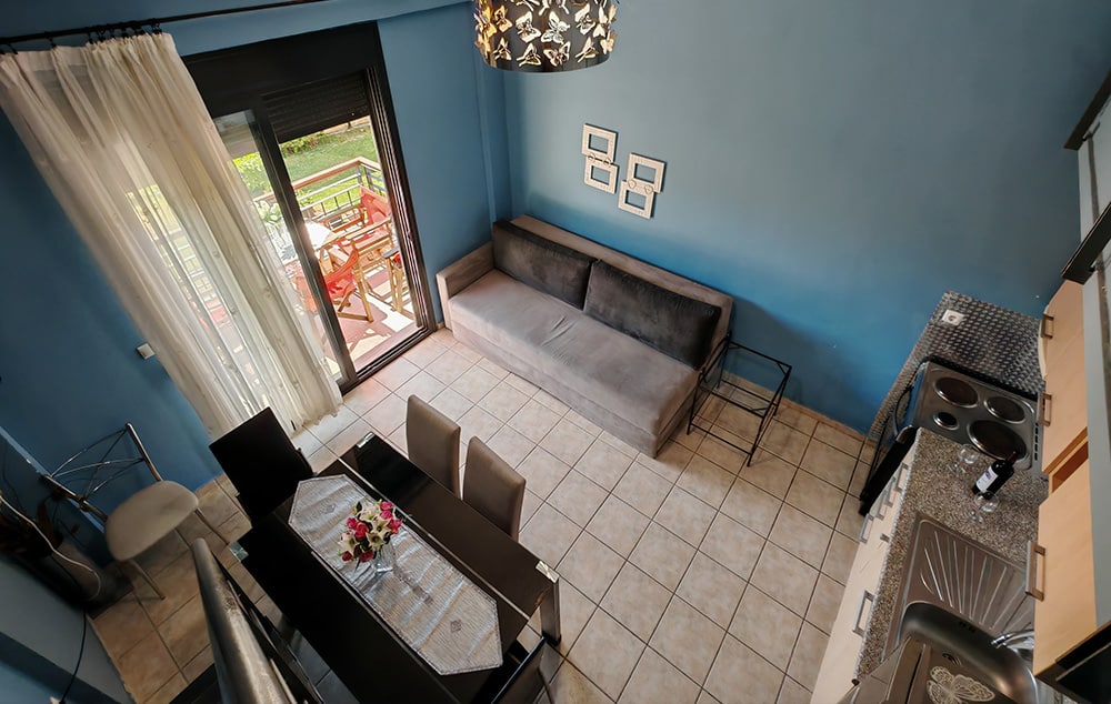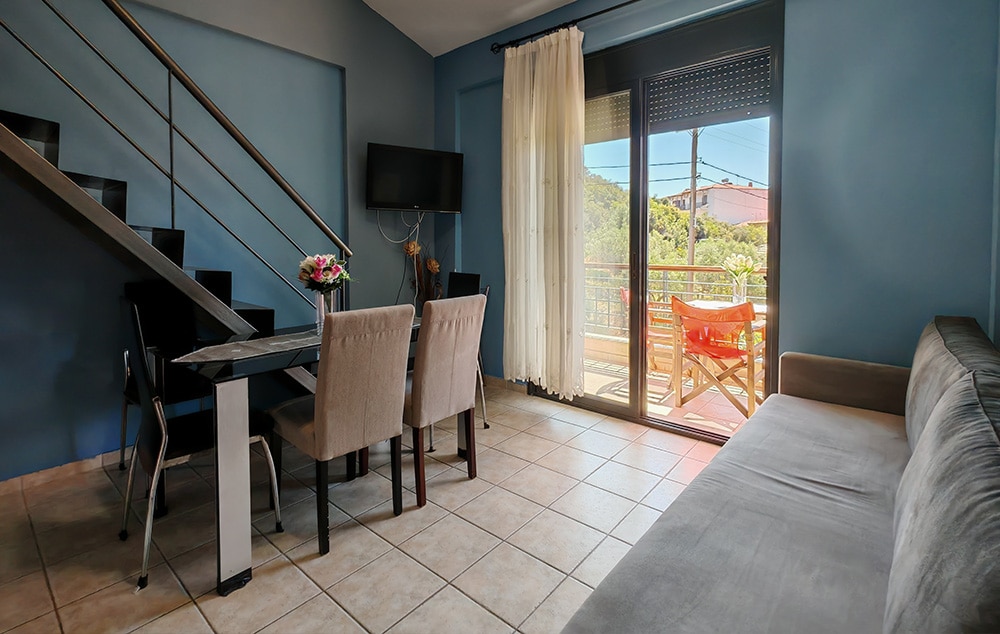 Nalazi se odmah preko puta kuće Magda na samo 80m od plaže u najlepšem delu Kalamicija. U ponudi je prostran apartman sa galerijom na prvom spratu koji može da ugosti do 6 osoba. Na donjem nivou ima dnevni boravak sa većom kuhinjom i spavaću sobu. Na galeriji se nalazi francuski ležaj. Apartman ima TV, dva klima uređaja čije je korišćenje uključeno u cenu.