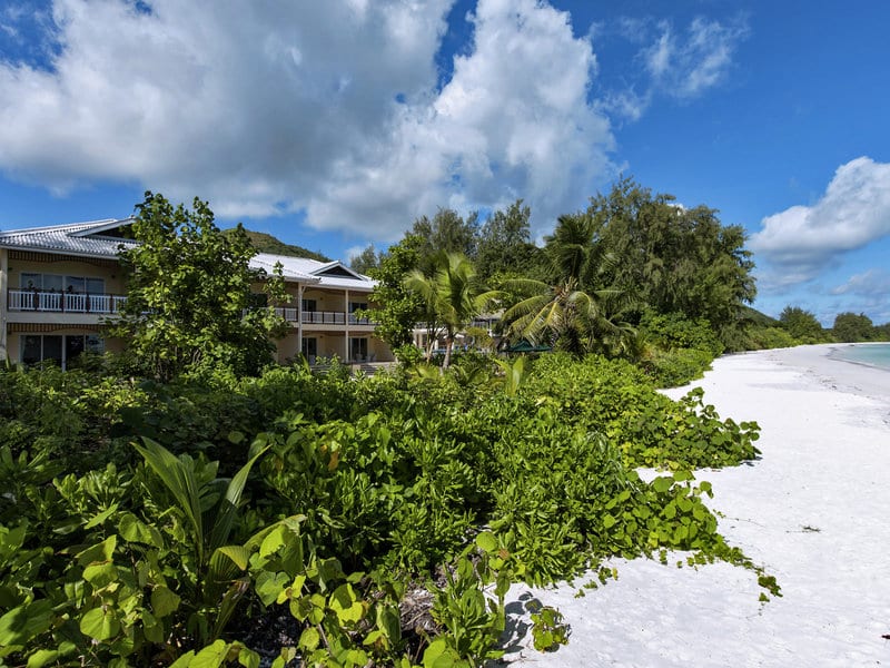 Hotel se nalazi direktno na peščanoj plaži Anse Volbert, sa pogledom na tirkizno more i obližnja ostrva. Aerodrom Praslin udaljen je 12 kilometara, dok je luka Baie Ste Anne na oko pet kilometara. Nacionalni park Vallée de Mai dostupan je za manje od 15 minuta vožnje, a centar mesta Cote d’Or nalazi se na oko jedan kilometar od hotela. Plaža ispred resorta opremljena je ležaljkama, peškirima i suncobranima, dostupnim bez dodatne nadoknade.