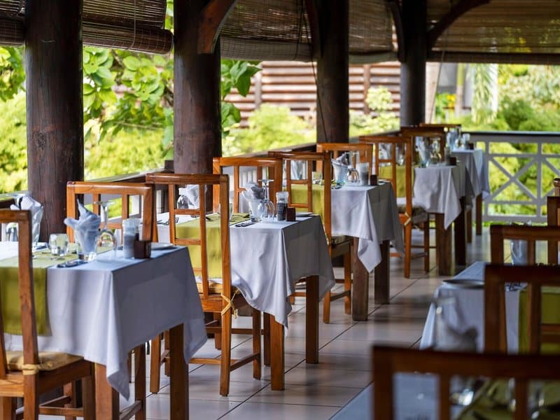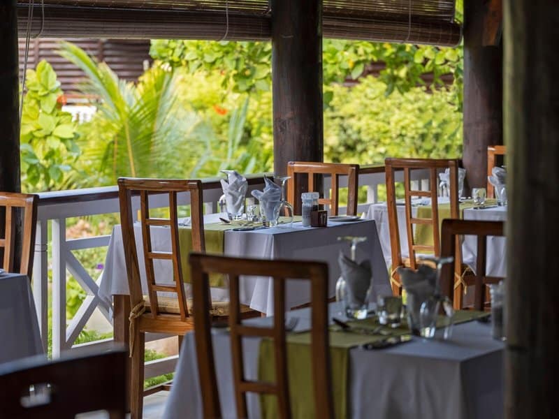 Glavni restoran sa terasom nudi jela azijske, kreolske i internacionalne kuhinje, sa akcentom na morske plodove i lokalne sastojke. Korišćenje domaćeg povrća i voća iz sopstvene bašte i posvećenost smanjenju otpada dodatno naglašavaju održivi pristup. Gostima su dostupni i lobi bar, kao i bar pored bazena. Osnovna usluga boravka uključuje noćenje sa doručkom, dok se apartmani mogu rezervisati isključivo bez obroka.