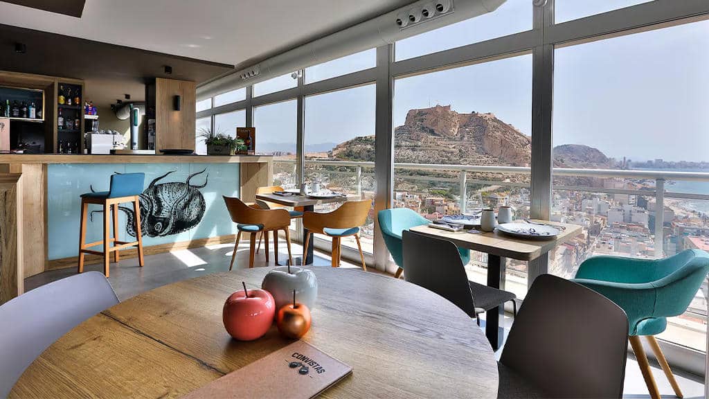 Hotel se nalazi u prepoznatljivoj zgradi sa panoramskim pogledom na more i grad, koja je jedan od simbola panorame Alicantea.