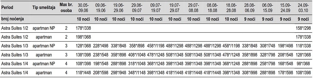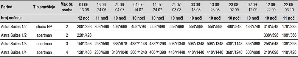 Cena bez * predstavlja cenu najma smeštaja za navedeni broj osoba.