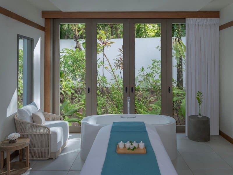 Spa centar raspolaže sa pet tretmanskih soba i nudi raznovrsne masaže i tretmane lepote. Sauna, parno kupatilo i plunge pool dostupni su gostima koji žele dodatni vid opuštanja, dok su časovi joge i probno ronjenje dostupni uz doplatu. Babysitting usluga je moguća na zahtev i pruža dodatnu fleksibilnost porodicama sa decom.