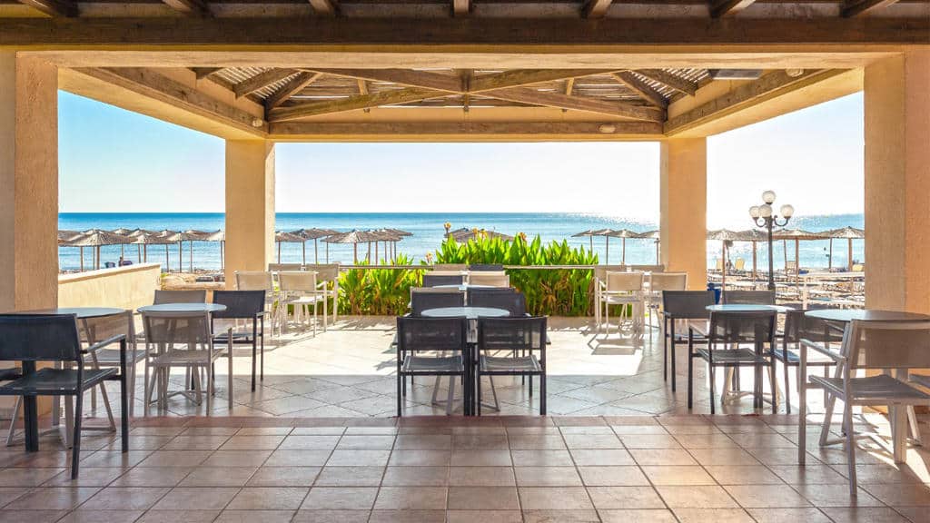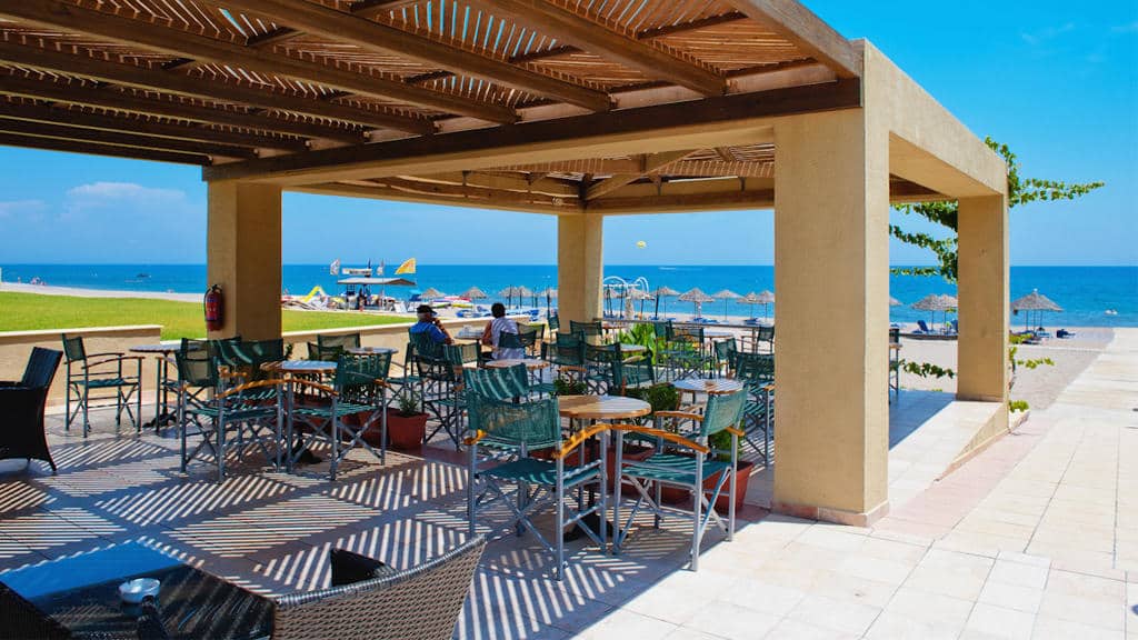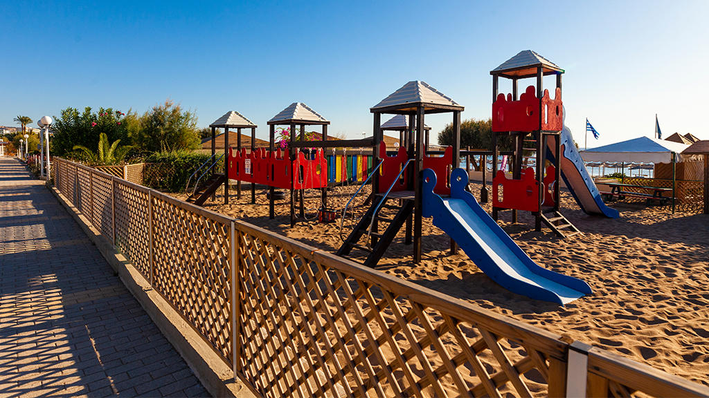 Smešten je na samoj peščano-šljunkovitoj plaži, gde je korišćenje suncobrana i ležaljki besplatno, kao i peškira za plažu.
