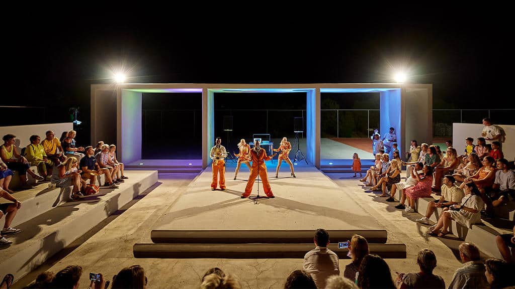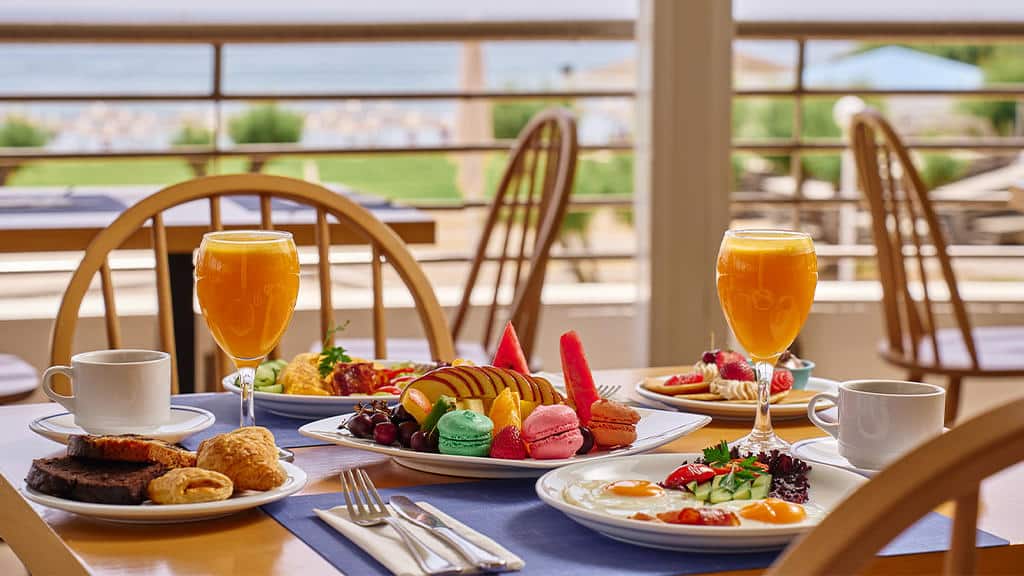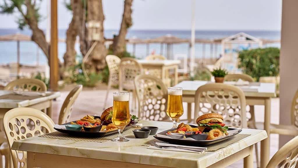 Gostima su na raspolaganju: recepcija 24h, glavni restoran, Burger House i Greque a la carte restoran, snack bar, glavni bar, bar pored bazena, bar na plaži, 3 spoljašnja bazena, unutrašnji bazen, dečiji bazen sa toboganom, Wi-Fi, lift, mini market, prostorija za odlaganje prtljaga, usluga pranja veša (uz doplatu), fitness centar, tenis, teren za košarku, fudbalski teren, teretana, odbojka na plaži, sauna i jacuzzi (besplatno), masaže uz doplatu, frizerski salon uz doplatu, mini klub za decu (od 10-12:20 & od 15-17:00h), mini disko, stoni tenis, bilijar i video igrice uz doplatu, igralište, parking. Veoma sadržajan animacioni program za decu i odrasle kako tokom dana, tako i u večernjim časovima, gde se u amfiteatru organizuju razne muzičke večeri, kabarei, takmičenje i slično. Jednom nedeljno hotel organizuje grčko folklorno veče, kao i karaoke zabavu. Vodeni sportovi na plaži su dostupni gostima (uz doplatu).