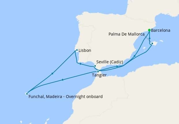 Barselona – Kadiz (Sevilja) – Lisabon – Madeira (Funchal) – Tangier (Maroko) – Majorka
