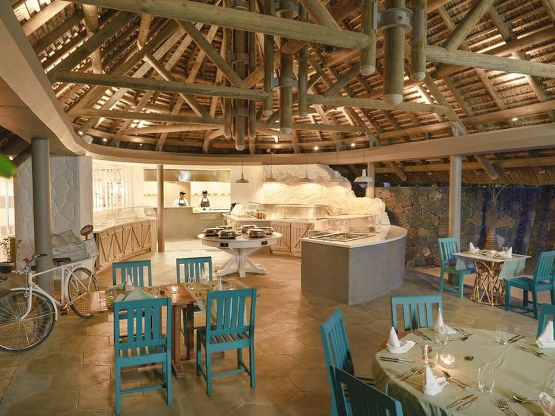 U ponudi je buffet restoran sa lokalnom i internacionalnom kuhinjom, à la carte restoran, kao i barovi i mauricijski street-food kiosk Taba-J tokom dana.