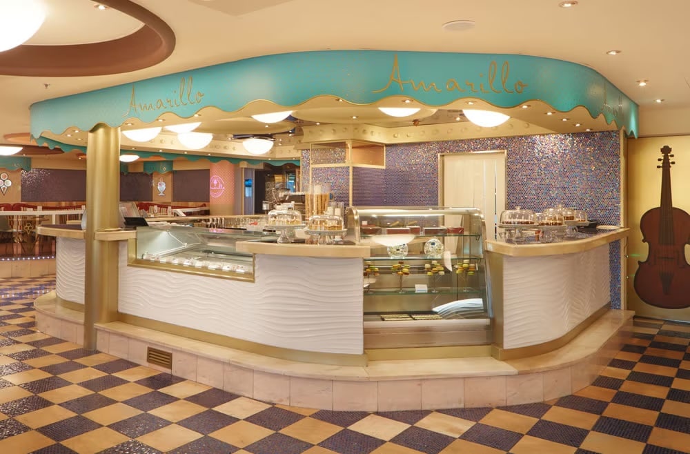 Na brodu se nalazi i 13 barova, uključujući vinski bar, kafeterije i barove pored bazena, sa bogatom ponudom koktela i pića iz celog sveta.
