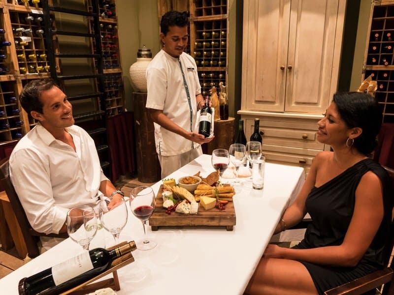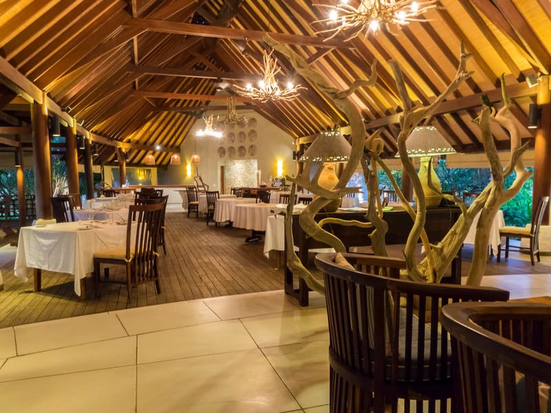 Usluga je na bazi punog pansiona, sa doručkom na švedskom stolu, dok se ručak i večera serviraju kao bife ili meni po izboru. Većina namirnica potiče iz sopstvene farme na ostrvu – sveža riba, plodovi mora i tropsko voće predstavljaju osnovu lokalne kuhinje, u kombinaciji sa internacionalnim specijalitetima.