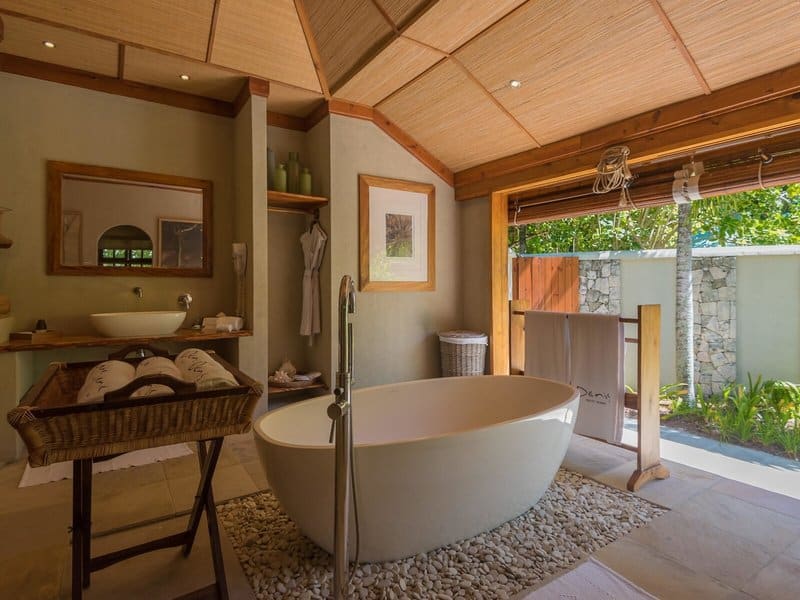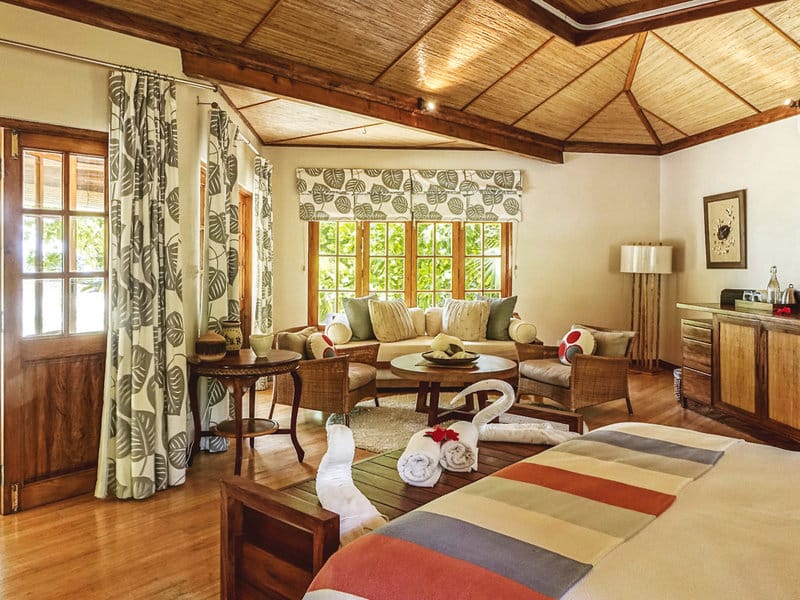 Deluxe Beach Cottage (oko 130 m²) nudi klimatizovan prostor sa mini frižiderom, sefom, aparatom za kafu/čaj, kupatilom sa tušem i fenom, te privatnom terasom sa ležaljkama i direktnim izlazom na plažu. Beach-Front Spa Cottage (oko 150 m²) ima dodatni otvoreni masažni paviljon i predivan pogled na okean. Sve jedinice odišu rustičnim luksuzom i spojem prirodnih materijala i modernog komfora.