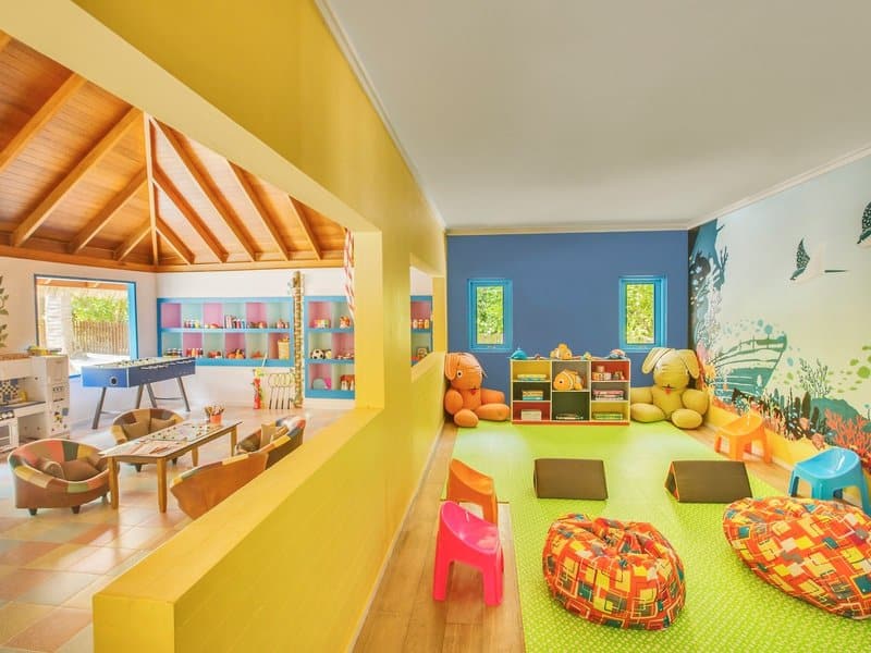 Dusit Thani Maldives je prijateljski nastrojen prema porodicama. Mini klub organizuje svakodnevne aktivnosti za decu, uključujući kreativne radionice, igranje u prirodi i zabavne edukativne programe. Igralište i dečiji bazen dostupni su za mlađe goste, dok se čuvanje dece može organizovati uz doplatu.
