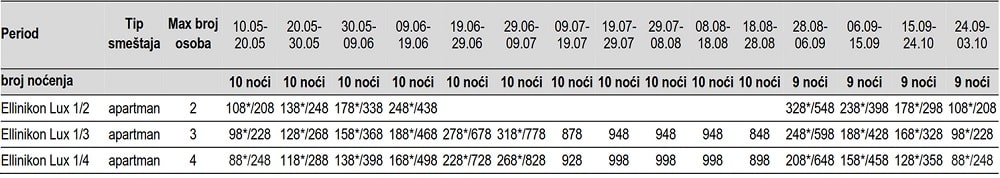 • Cena sa “zvezdicom” * predstavlja cenu paket aranžmana (smeštaj+prevoz) PO OSOBI.
