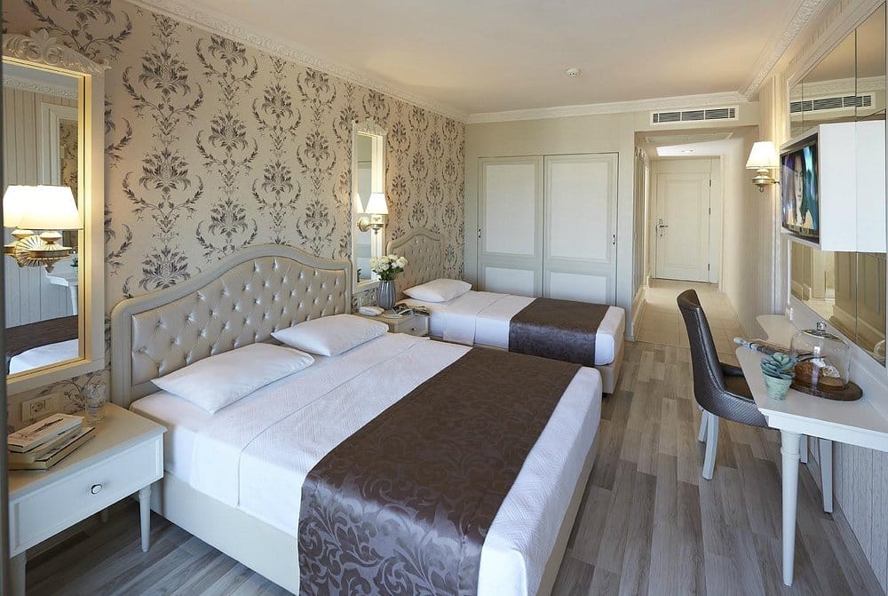 STANDARD TWIN SOBE, STANDARD LATERAL SEA VIEW i STANDARD SEA VIEW SOBE smestene su u delu hotela Emre Beach, do plaže. Površine su 18 m², za max 3 osobe i većina ima pogled na kopno (francuski ležaj ili dva odvojena kreveta, za dodatnu osobu/dete dodatni pomoćni ležaj).