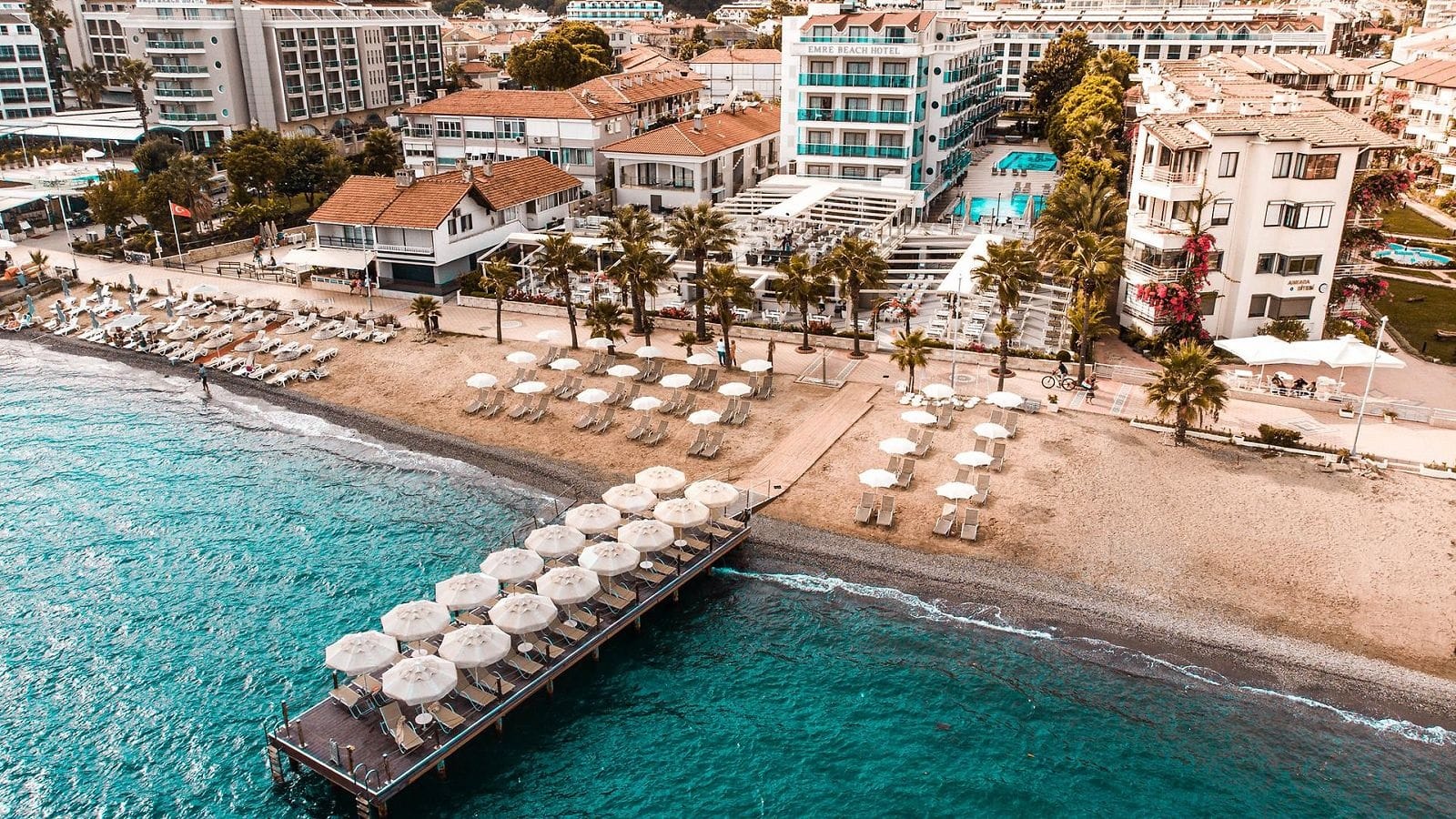 HOTEL SAMO ZA ODRASLE, 14+ godina, hotel na plaži u Ičmeleru, prelepom mestu, 8km od centra Marmarisa. Gradski hotel, dobra usluga. L.ežaljke i suncobrani su besplatni..