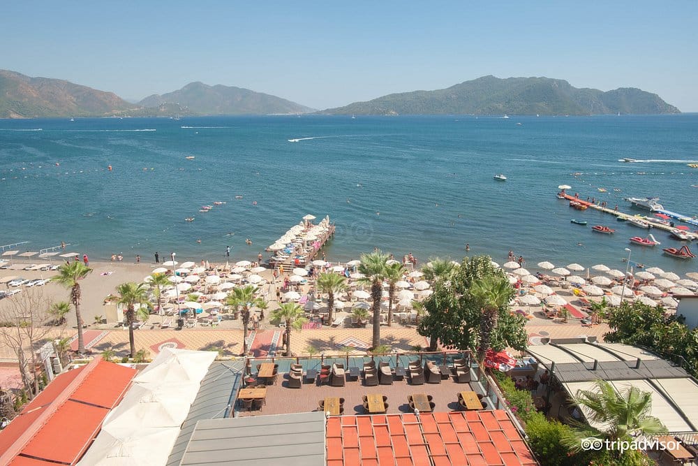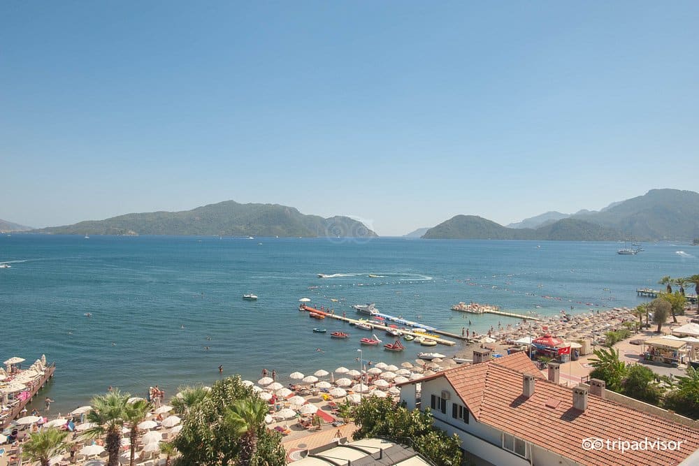 Jedan od malobrojnih hotela koji imaju zelenila i hlada i na plaži. Na pola puta izmešu dva mesta, 5km od Marmarisa, 3km Ičmelera... Kvalitetan resort sa plažom koja je platforma...