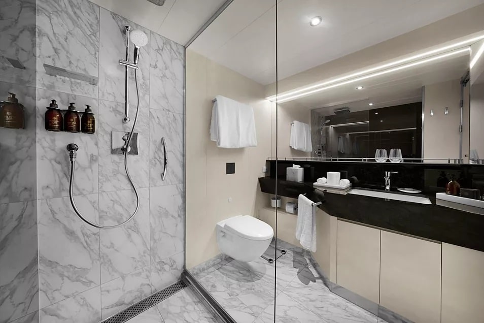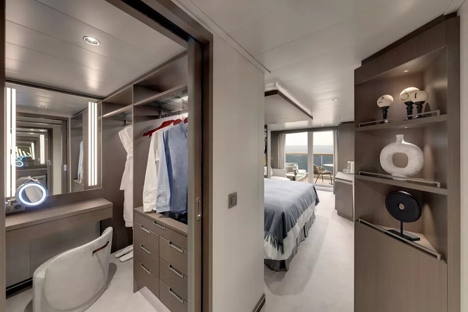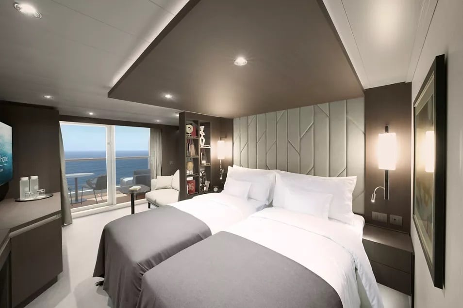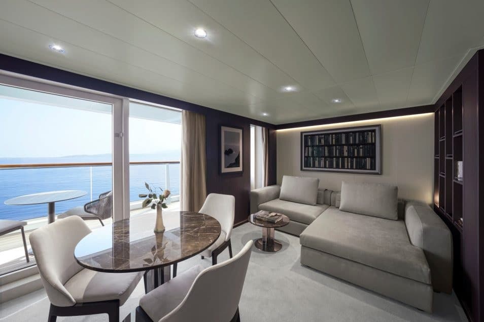 Svaka kabina je prostrani apartman sa privatnom terasom, svaki detalj je osmišljen da pruži osećaj privatnosti i sofisticiranosti, a iskustvo na brodu se oslanja na personalizovanu uslugu, fine dining u više restorana svetske klase i holistički wellness pristup.