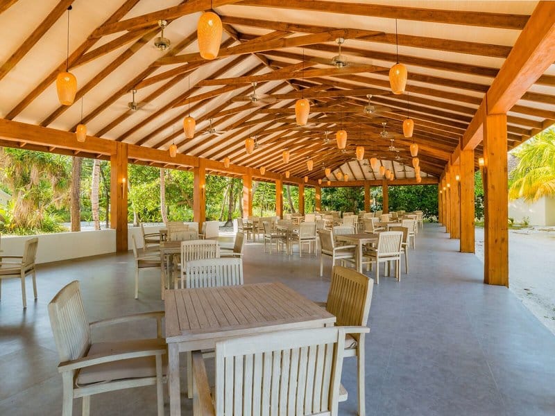 Glavni restoran „Koveli“ nudi spoj lokalnih i internacionalnih ukusa, uz bogate švedske stolove i à-la-carte večere. U kafeu „Riya“ dostupni su lagani obroci i pića tokom dana, dok restoran „Mandhoo-Grill“ nudi specijalitete sa roštilja i morske plodove. Bar „Jade“ se nalazi iznad vode i jedini služi alkoholna pića.