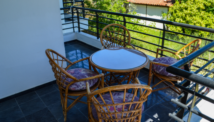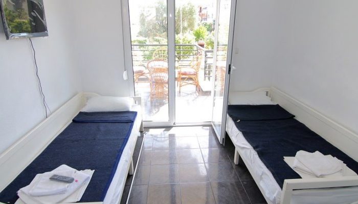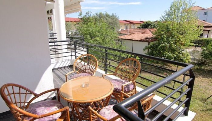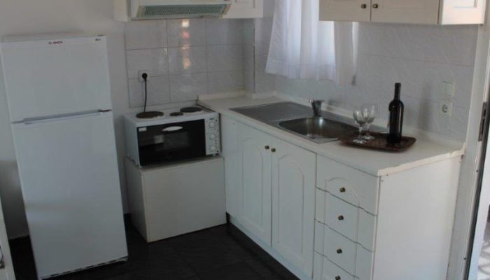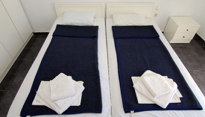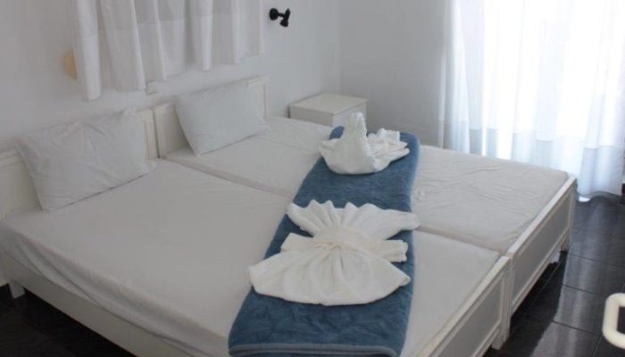 Opis: Vrlo kvalitetan smeštaj. Apartmani se sastoje od spavaće sobe u kojoj su dva spojena ležaja, dnevno-spavaće sobe sa dva odvojena ležaja u kojoj je kuhinja opremljena osnovnim potrepštinama. Iz obe sobe izlazi se na veliku terasu opremljenu tendom i sa ratan garniturom za sedenje. Svi apartmani poseduju klima uredjaje, TV. Posteljina i peškiri, su sastavni deo svake smeštajne jedinice i menjaju se jednom u toku boravka gostiju.