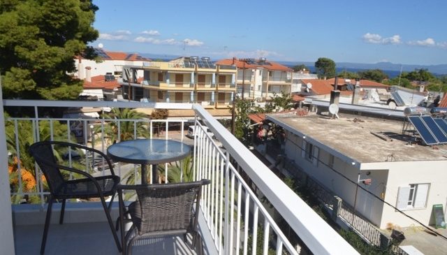 Nedaleko od centra letovališta Hanioti i na oko 150 metara udaljenosti od plaže. Kvalitetna, dobro pozicionirana vila poseduje dvokrevetne studije, dvokrevetne i trokrevetne garsonjere kao i četvorokrevetni duplex..