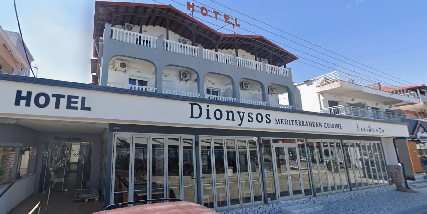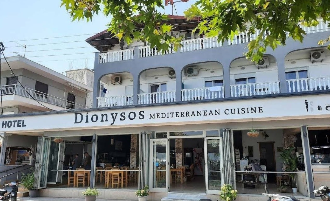 Vila Dionisos se nalazi u centralnom delu Nei Porija, na plaži. U prizemlju vile nalazi se internacionalni restoran u kome postoji mogućnost uplate polupansiona.