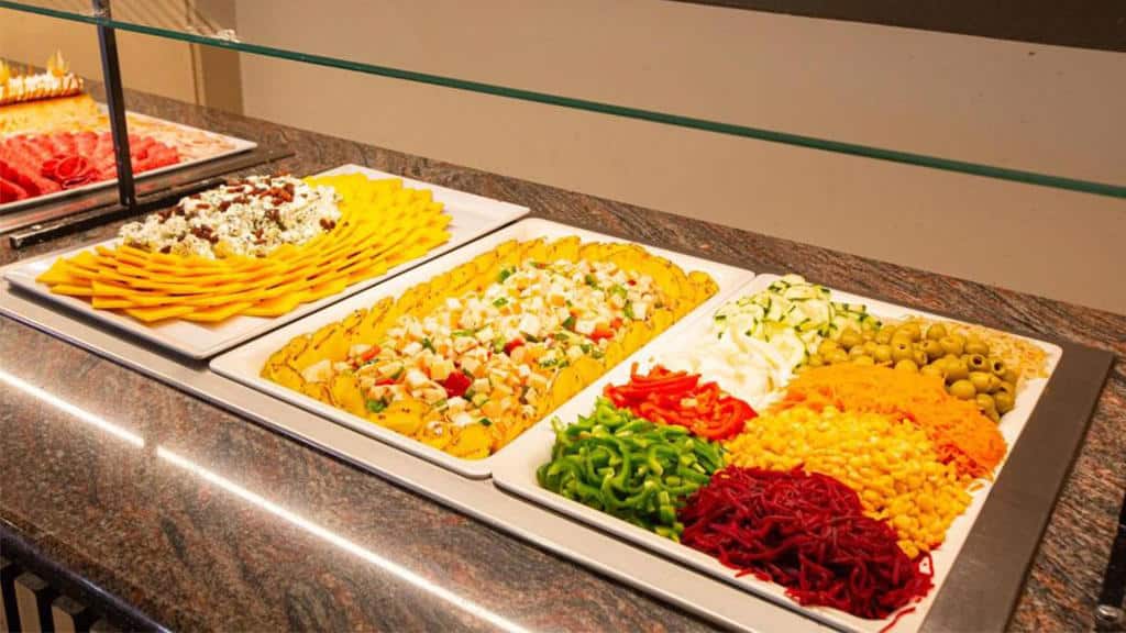 Noćenje sa doručkom (samoposluživanje-švedski sto), polupansion (doručak I večera -samoposluživanje, švedski sto), pun pansion (doručak, ručak I večera – švedski sto, samoposluživanje).