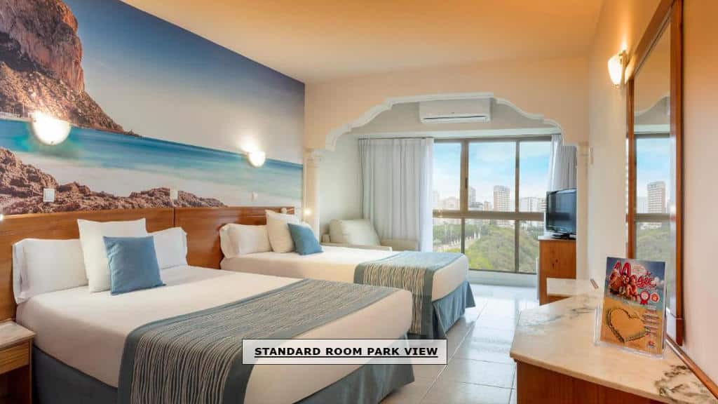 Standard sobe pogled na park (junior park view) mogu da smeste od jedne do četiri odrasle osobe, odnosno najviše troje odraslih I jedno dete ili dvoje odraslih I dvoje dece. Ovaj tip soba ima zastakljenu terasu ili balkon sa pogledom na park L’Aiguera (u pojedinim sobama terasa je zatvorenog tipa – lođa). Sobe su po strukturi dvokrevetne (francuski ležaj ili dva odvojena kreveta), dok je treći/četvrti ležaj, pomoćni. Jednokrevetna soba je namenjena za jednu osobu sa standardnim ležajem.