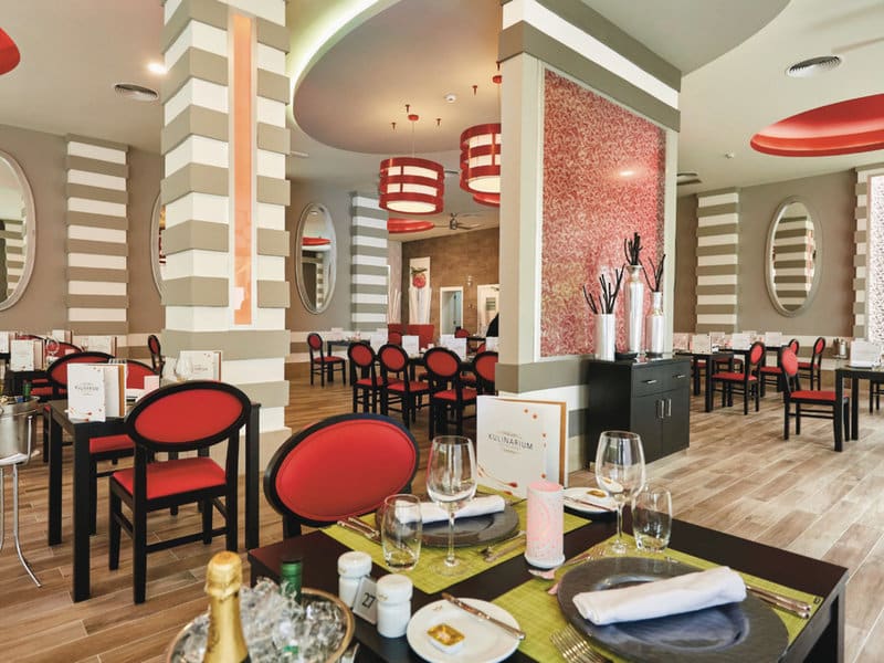 Obroci se nude u 7 restorana – od internacionalnog buffeta do specijalizovanih kuhinja (meksička, italijanska, azijska, gourmet, steakhouse). Uz ponudu kolača, užina i 24h pića, gosti mogu uživati i u 7 barova, uključujući swim-up bar i beach lounge.