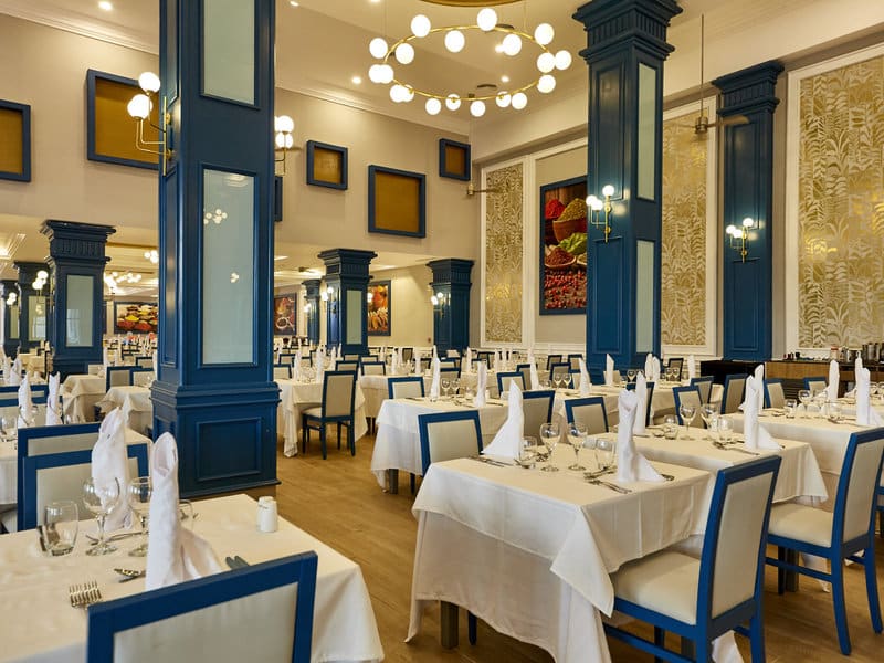 U ponudi su buffet obroci, tematske večeri nekoliko puta nedeljno i à-la-carte restorani bez potrebe za rezervacijom. Užine, kolači, osveženja, kao i lokalna i međunarodna pića dostupna su tokom celog dana i noći. U okviru kompleksa postoji i poslastičarnica sa sladoledom.