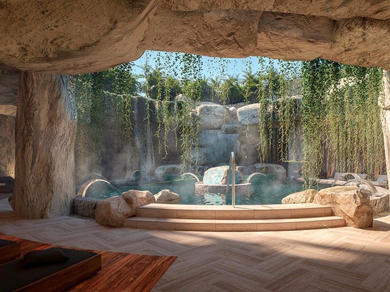 Za one koji žele opuštanje, spa centar u dizajnu kamene pećine prostire se na preko 27.000 m² i nudi hidroterapiju, masaže i razne tretmane lepote. Fitnes centar sa površinom od 1.300 m² opremljen je najsavremenijim spravama, uz mogućnost organizovanih treninga poput TRX-a, spinninga, joge i pilatesa. Za dodatni izazov, aqua cycling i pojedini tretmani su dostupni uz doplatu.