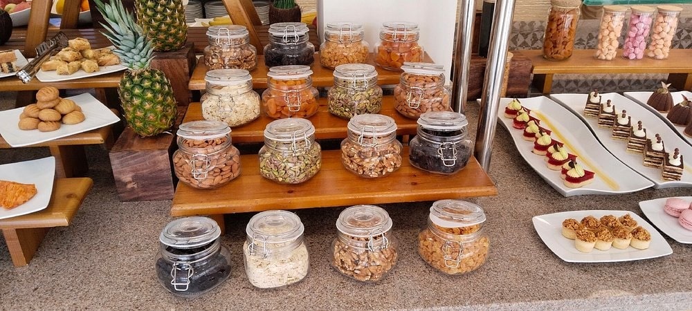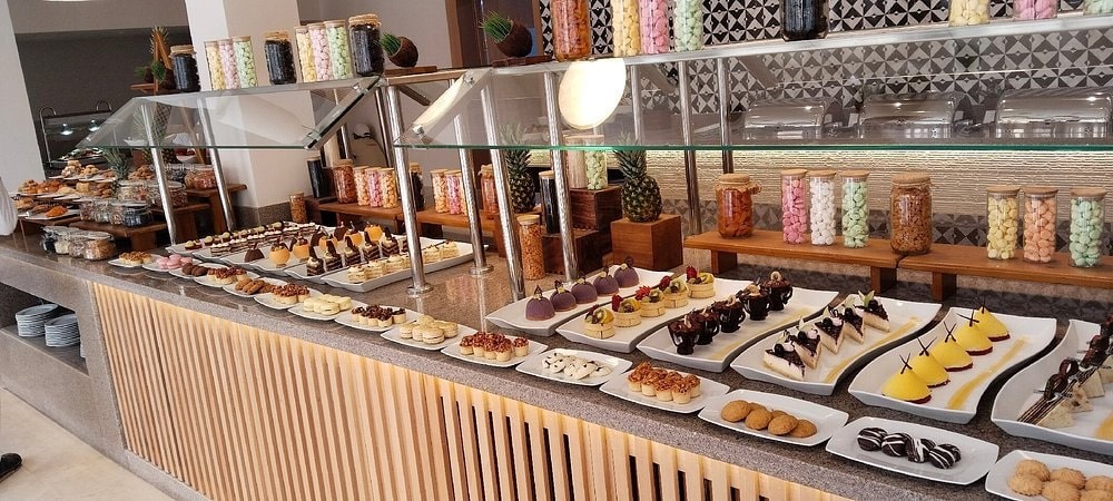 Hotelski sadržaj: Osim glavnog restorana hotela Jaz Almaza Blue, gostima su na raspolaganju mediteranski (Corallo Mediterranean Restaurant), orijentalni (Sofra Oriental Restaurant) i azijski (Makai-Tukai Restaurant) a’ la carte restoran kao i snack bar i bar pored bazena. Od dodatnih sadržaja u ponudi hotela Jaz Almaza Blue je menjačnica, wi fi internet (besplatan za četiri uređaja po smeštajnoj jedinici), servis za pranje i peglanje, rent-a-car i usluge lekara na pozivu (uz doplatu).