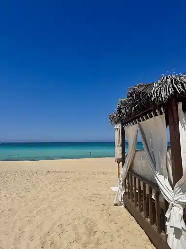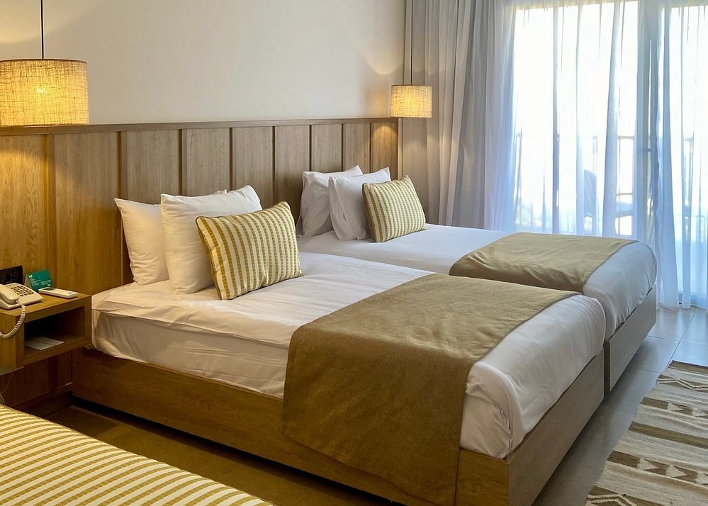 Plaža: Od poznate peščane plaže u zalivu je udaljen 300 m (nalazi se u drugom redu od mora, iza hotela Jaz Almaza Beach) Gosti koriste ležaljke, suncobrane i peškire bez doplate.