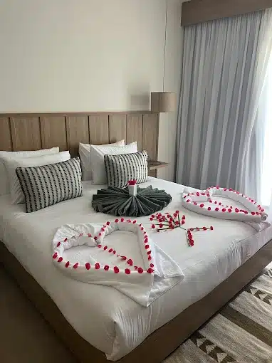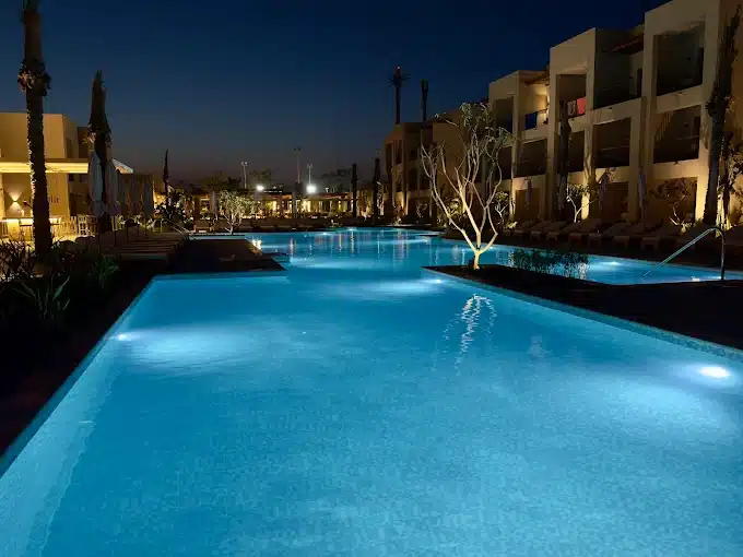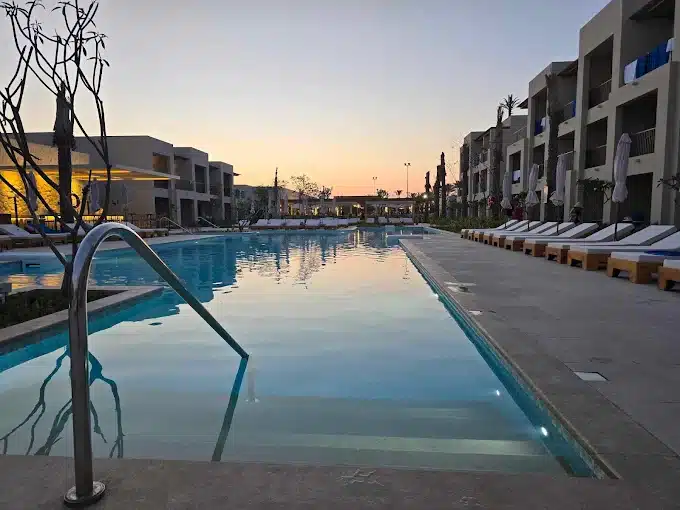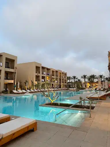 Lokacija: Jaz Almaza Blue je novootvoreni hotelski kompleks, deo je poznatog lanca Jaz i počeo je sa radom u sezoni 2025. Kompleks je građen u orijentalnom i boho stilu i predstavlja pravu oazu luksuza. Aerodrom Marsa Matruh do koga su organizovani direktni čarter letovi udaljen je 37 km od hotela.