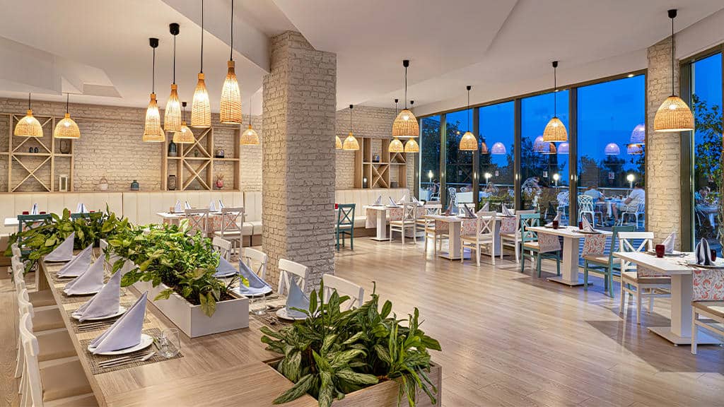 Glavni i 3 a’la carte restorana (rošilj, taverna i italijanski – jednom u toku boravka restoran po izboru uz rezervaciju – besplatno), dijetalni i vegetarijanski meni, Wi-Fi internet (besplatno), 3 spoljašnja i unutrašnji bazen, 2 vodena tobogana, 5 barova, sala za konferenciju (220 osoba), 5 teniskih terena, teretana, sauna, tursko kupatilo, sauna, muzika uživo, diskoteka, animacija, odbojka na pesku, košarka, aerobik, stoni tenis, pikado, mini golf, mini fudbal, boćanje, vaterpolo, 3 vodena tobogana, dečiji bazen, dečije igralište, dečiji meni, mini klub za decu (4-12 godina), junior club (13-16 godina, u julu i avgustu). Plaća se: video igre, bilijar, motorni sportovi na vodi, najam rekvizita za tenis, masaža, đakuzi, usluge frizerskog i salona lepote, dadilja, usluge pranja, peglanja i hemijskog čišćenja veša, usluge doktora.