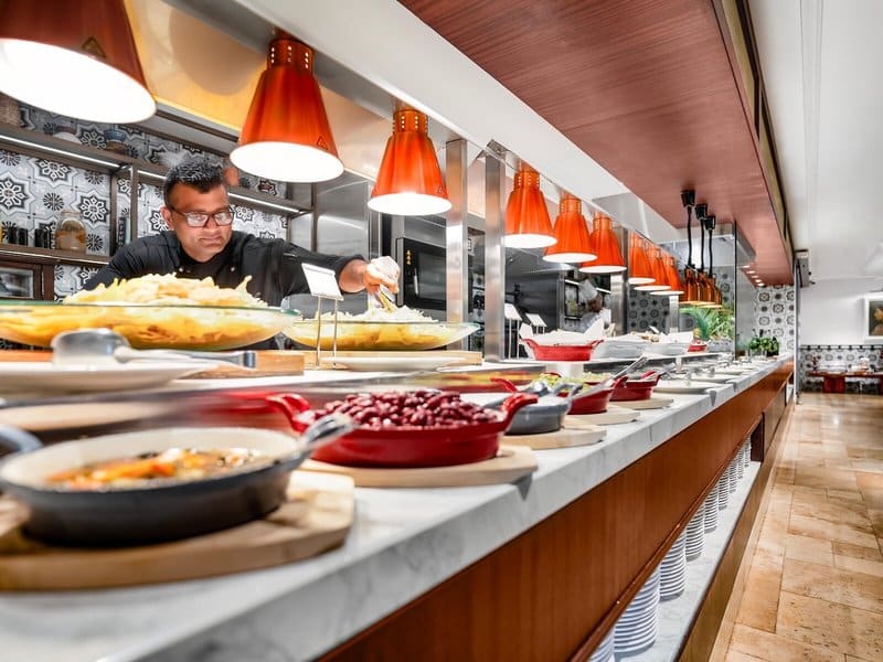 Gastronomska ponuda obuhvata glavni restoran sa bogatim švedskim stolom, dva à-la-carte restorana sa specijalitetima međunarodne i lokalne kuhinje, kao i bar za opuštanje tokom dana i večeri. Gosti sa rezervacijom polupansiona mogu večerati i u à-la-carte restoranima uz doplatu na licu mesta, čime se otvara mogućnost raznovrsnog kulinarskog iskustva.