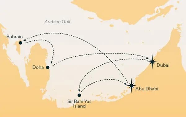 Dubai – Doha – Bahrein – Abu Dabi – Sir Bani Yas – Dubai