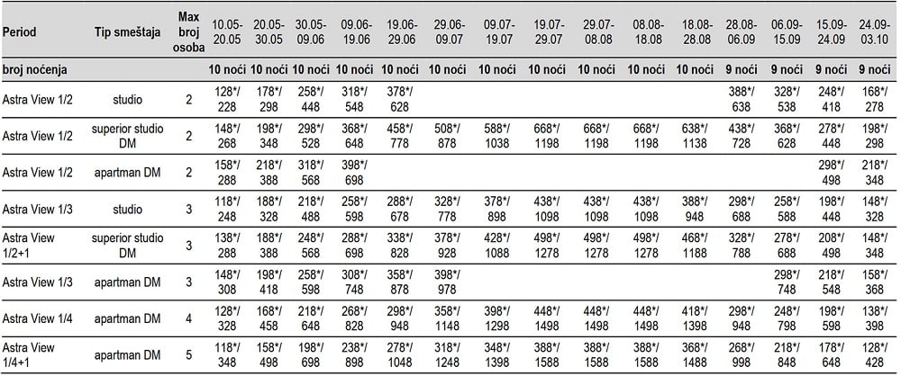 • Cena sa “zvezdicom” * predstavlja cenu paket aranžmana (smeštaj+prevoz) PO OSOBI.