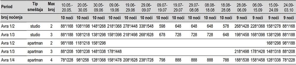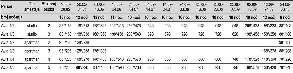 • Cena bez * predstavlja cenu najma smeštaja PO SMEŠTAJNOJ JEDINICI.