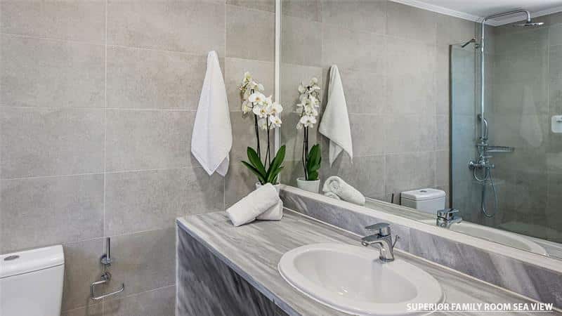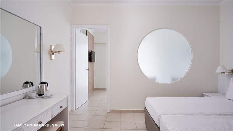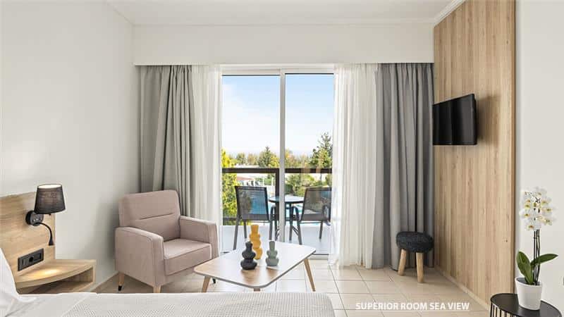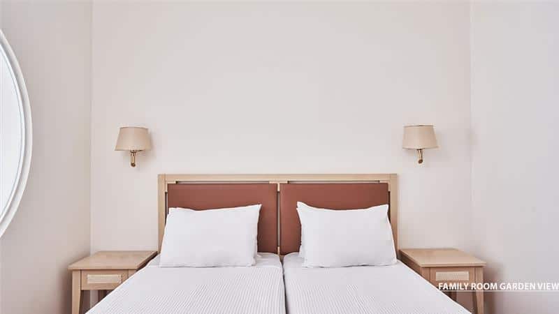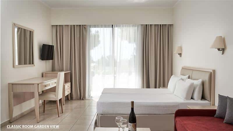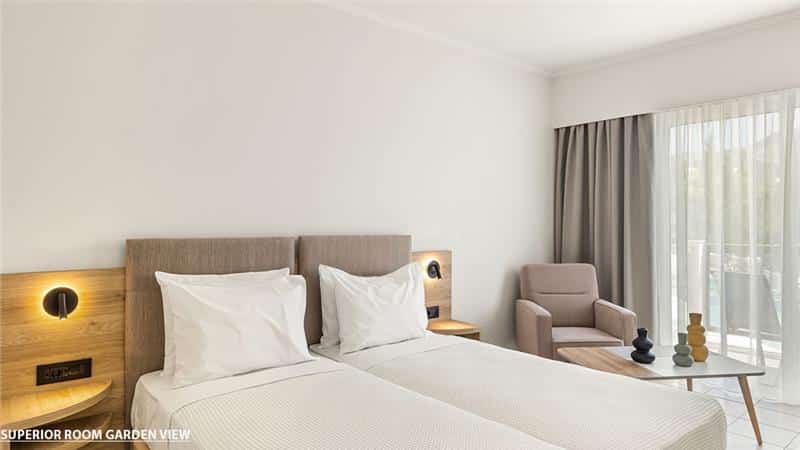Hotel poseduje ukupno 410 soba. U našoj ponudi su classic soba pogled bašta (25-32m2), superior soba pogled bašta i pogled more (25-32m2), superior porodična soba pogled more i porodična soba pogled bašta (31m2). Sve sobe su dvokrevetne po svojoj osnovnoj strukturi, dok treći ležaj može biti pomoćni. Tipovi soba classic soba pogled bašta, superior soba pogled bašta i pogled more, mogu da prime maksimum dve odrasle osobe i jedno dete, sastoje se od francuskog ili dva odvojena ležaja, dok treći ležaj može biti pomoćni. Superior porodična soba pogled more može da primi maksimum troje odraslih i jedno dete ili dvoje odraslih i dvoje dece, sadrži francuski ili dva singl ležaja i dok ležaj za potrebe treće i četvrte osobe može biti u vidu sofe na razvlačenje. Porodična soba pogled bašta može da primi maksimum četiri odrasle osobe ili troje odraslih i dete, sadrži francuski ili dva singl ležaja i dok ležajevi za potrebe treće i četvrte osobe mogu biti pomoćni. Sve sobe sadrže: kupatilo kada/tuš, klima uređaj, set za čaj/kafu, sef, telefon, ketler, Sat TV, fen, mini bar (uz doplatu), Wi-Fi (besplatno), balkon/terasu. Bebi krevetac je na upit (besplatno).