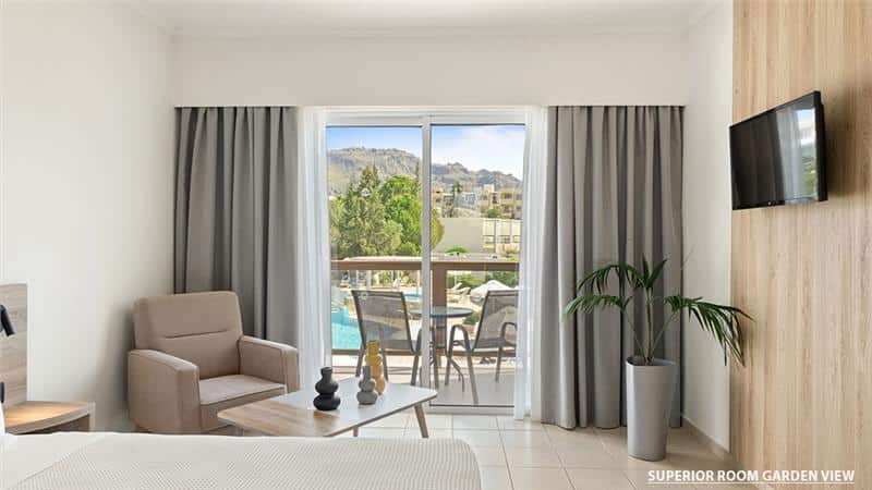 Luksuzan hotel sa svojom plažom. Odlična usluga. Atraktivni Lindos se nalazi na 15km od hotela...