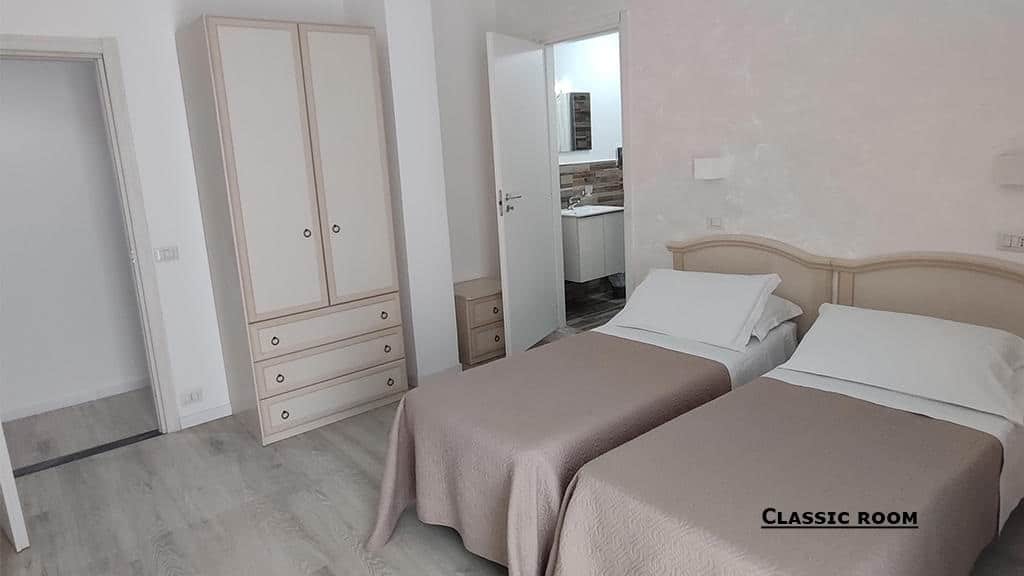 U našoj ponudi su standard (klasik) sobe sa balkonom, sa pogledom na ulicu i pogledom na more. Svaka soba poseduje poseduje kupatilo (tuš/WC), fen, TV, telefon, mini frižider, klima uređaj, besplatan internet, balkon. Maksimalni kapacitet osoba po sobi je troje odraslih Ili dvoje odraslih I dete do 12 godina u sobama sa pogledom na ulicu, dok je maksimalni kapacitet u sobama sa pogledom na more, dve odrasle osobe. Sobe su po strukturi dvokrevetne (poseduju francuski ležaj ili 2 odvojena kreveta) dok su svi ostali ležajevi u sobi pomoćni (za dete do 12 godina ili treću odraslu osobu). Jednokrevetna soba je isključivo za 1 osobu, 1 standardni ležaj. Krevetac za bebe je besplatan.