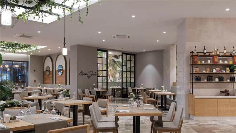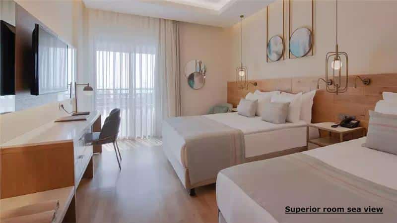Hotelski sadržaj: Glavni i 2 a’la carte restorana (italijanski i mediteranski – jednom u toku boravka besplatno se uz obaveznu rezervaciju), Wi-Fi internet, 4 bara, spoljašnji i unutrašnji bazen, 3 vodena tobogana, sauna, teretana, tursko kupatilo, aerobik, akvabik, stoni tenis, košarka, stoni fudbal, 4 teniska terena, pikado, boćanje, odbojka na plaži, animacija, diskoteka, dečije igralište, dečiji bazen i 3 vodena tobogana, dečiji klub (4-12 godina). Plaća se: doktor, masaža, spa centar, frizer, bilijar, motorni sportovi na vodi, osvetljenje teniskog terena, iznajmljivanje teniskih rekvizita, usluga pranja i hemijskog čišćenja veša.