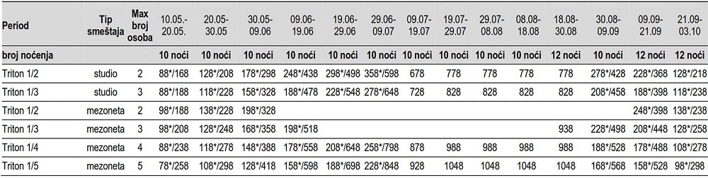Cena sa “zvezdicom” * predstavlja cenu paket aranžmana (smeštaj+prevoz) po osobi.