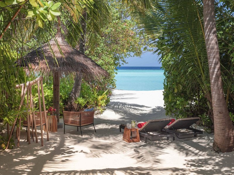Ostrvo je okruženo mekim, belim peskom i tirkiznom lagunom sa postepenim ulaskom u vodu, idealnom za kupanje i sunčanje. Hotelski greben nalazi se već na 10–25 metara od obale, pružajući izuzetne uslove za snorkeling i ronjenje među raznobojnim ribama i koralima.