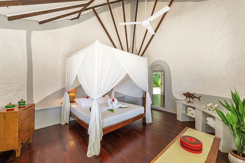 Kvalitetan resort okružen tropskom zelenilom, tirkiznom vodom i belim peskom; ima 120 luksuznih vila (na plaži i nad vodom), spa, ronilački centar, nekoliko restorana i barova.