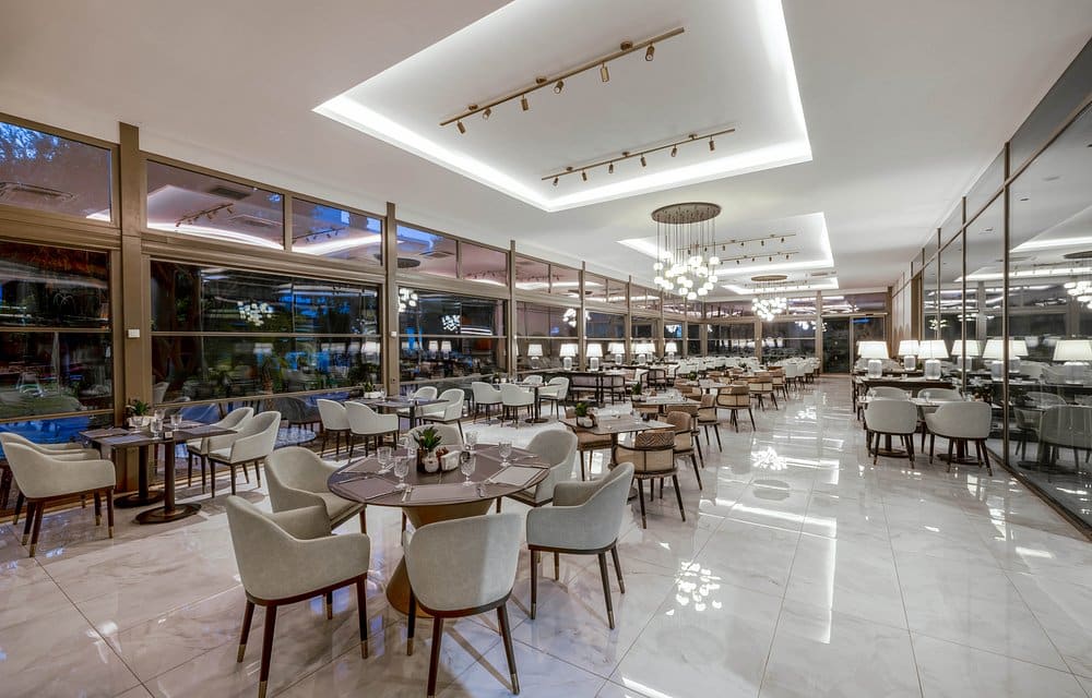Hotelski sadržaji: Glavni i 4 a’la carte restorana (meksički, azijski, mediteranski, steak house, morski plodovi, besplatno uz rezervaciju u jednom od restorana za nedelju dana), 7 barova, 2 fudbalska terena, 6 teniskih terena, 3 spoljašnja bazena, unutrašnji bazen, akva park sa 3 vodena tobogana, 15 konferencijskih sala (kapacitet od 20 do 2000 mesta), tursko kupatilo, SPA centar, fitnes centar, sauna, jacuzzi, parno kupatilo, teretana, animacioni program, aerobik, akvabik, odbojka na plaži, mini golf, mini fudbal, stoni tenis, stoni fudbal, TV sala, bioksop, diskoteka, pikado, košarka, iznajmljivanje opreme za tenis, dečiji meni u restoranu, dečije igralište, dečiji vodeni tobogan, dečiji bazen, mini klub (od 4 do 12 god). Plaća se: masaža, osvetljenje sportskih terena, kuglanje, bilijar, prodavnice, video igrice, motorni sportovi na vodi, usluge lekara, frizer, dadilja, pranja, peglanja i hemijskog čišćenja veša.