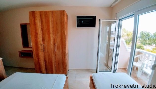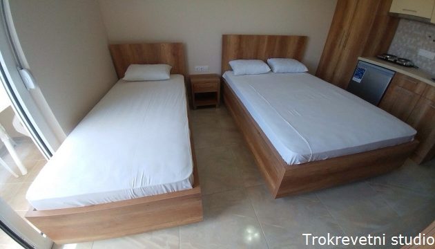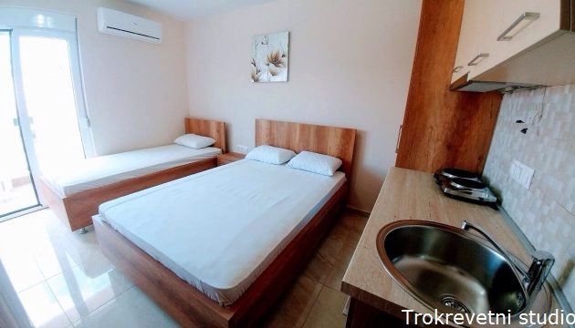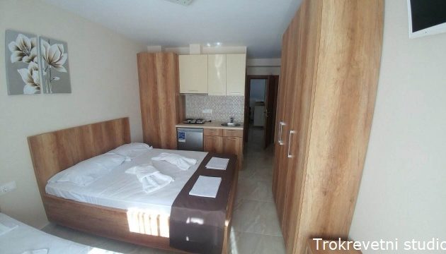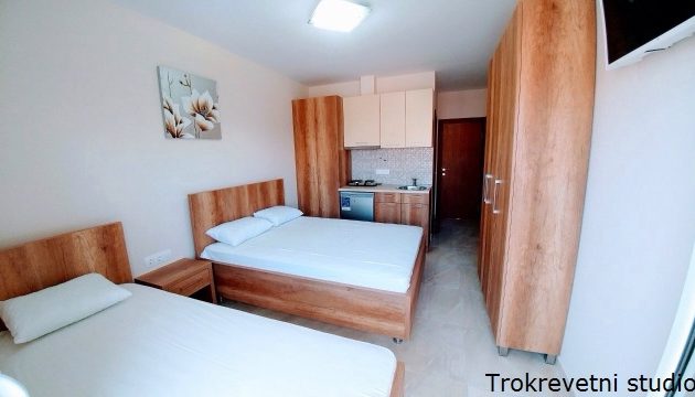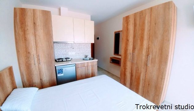 20 metara od plaže, u blizini šetališta. Idealno je pozocionirana, u blizini beach barova, restorana i prodavnica. U našoj ponudi su kompletn oopremljeni dvokrevetni i 2+1 studiji na prizemlju i prvom spratu...