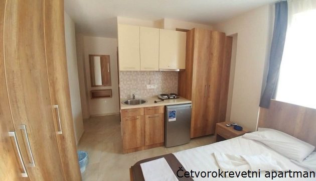 100m od plaže. Vila sadrži recepciju, lift kao i roof-garden (vrt na krovu zgrade) sa jacuzzi-jem, suncobranima, ležaljkama i garniturama za sedenje. U našoj ponudi su kompletno opremljeni studiji...