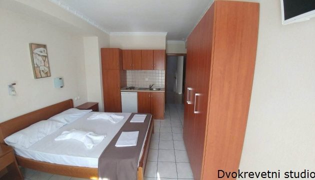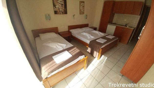 Na plaži, vila hotelskog tipa u strogom centru Olympic Beach-a, u našoj ponudi su kompletno opremljeni dvokrevetni i trokrevetni studiji sa čajnom kuhinjom od kojih neki imaju pogled na more...