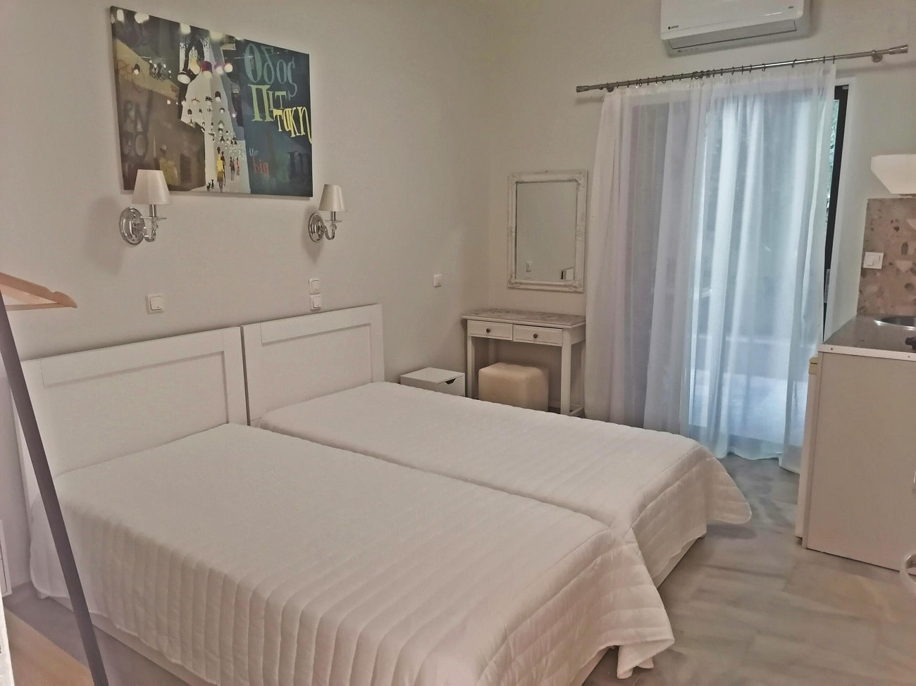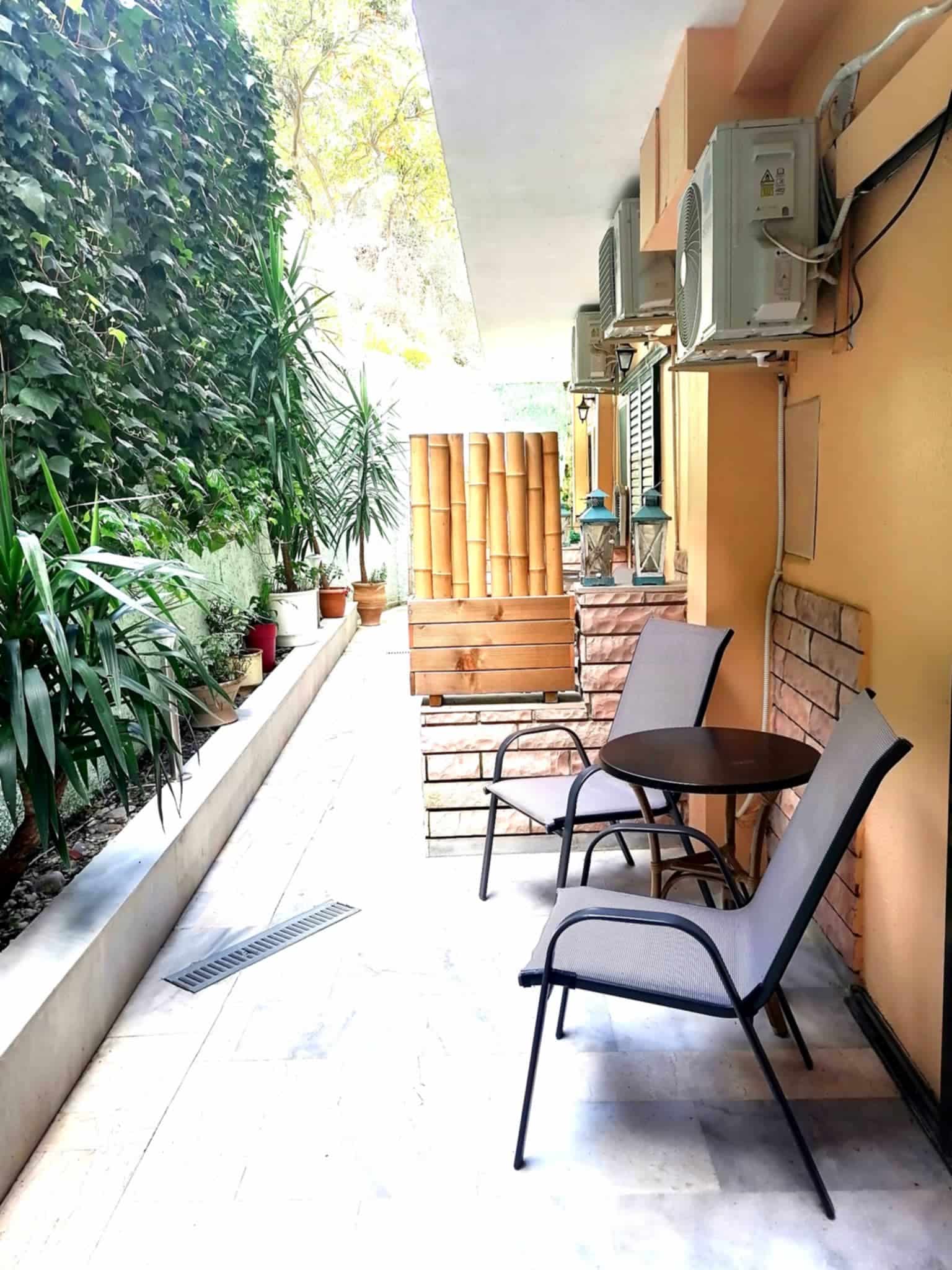 Smeštaj: Studiji za dve i tri osobe nalaze se u prizemlju i na spratu kuće. Terase studija u prizemlju su prolazne i predstavljaju ograđeni deo dvorišta sa pogledom na zid (videti na fotografijama).