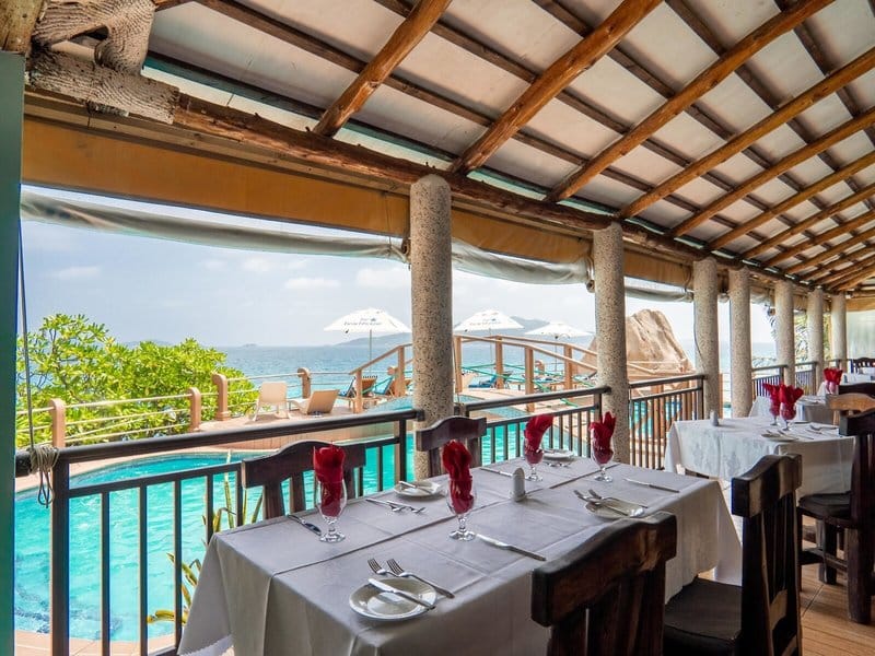 Hotel ima restoran koji nudi bogatu ponudu kreolskih specijaliteta, morskih plodova i jela sa roštilja. Bar je omiljeno mesto za opuštanje uz piće i pogled na more. Romantične večere uz zalazak sunca deo su autentičnog ugođaja koji ovaj mali hotel nudi svojim gostima.