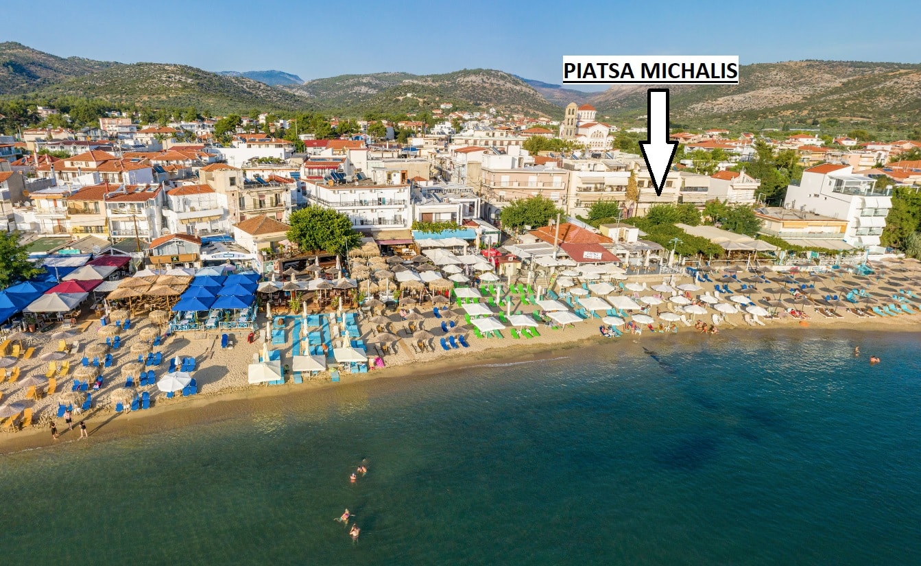 Piatsa Michalis, nekategorisan objekat, nalazi se u Potosu, jednom od najpopularnih i živahnih letovališta na ostrvu Tasos, u blizini brojnih restorana, kafića i prodavnica. Od mesta Pefhari je udaljen oko 1.5 km, a od Limenarije oko 3.5 km. Ovaj smeštajni objekat je odlična izbor za goste koji žele da budu u srcu dešavnja, a istovremeno da upoznaju južnu stranu ostrvo i uživaju u prelepim zalascima sunca i pogledu na Atos.